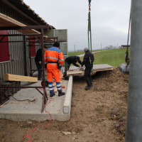 Heute war die Montage des Anbaus auf dem Programm. Die starke Bise half nicht gerade, aber der Chauffeur von Huber Transport hatte seinen Lastwagenkran voll im Griff und alles konnte ohne Probleme montiert werden.