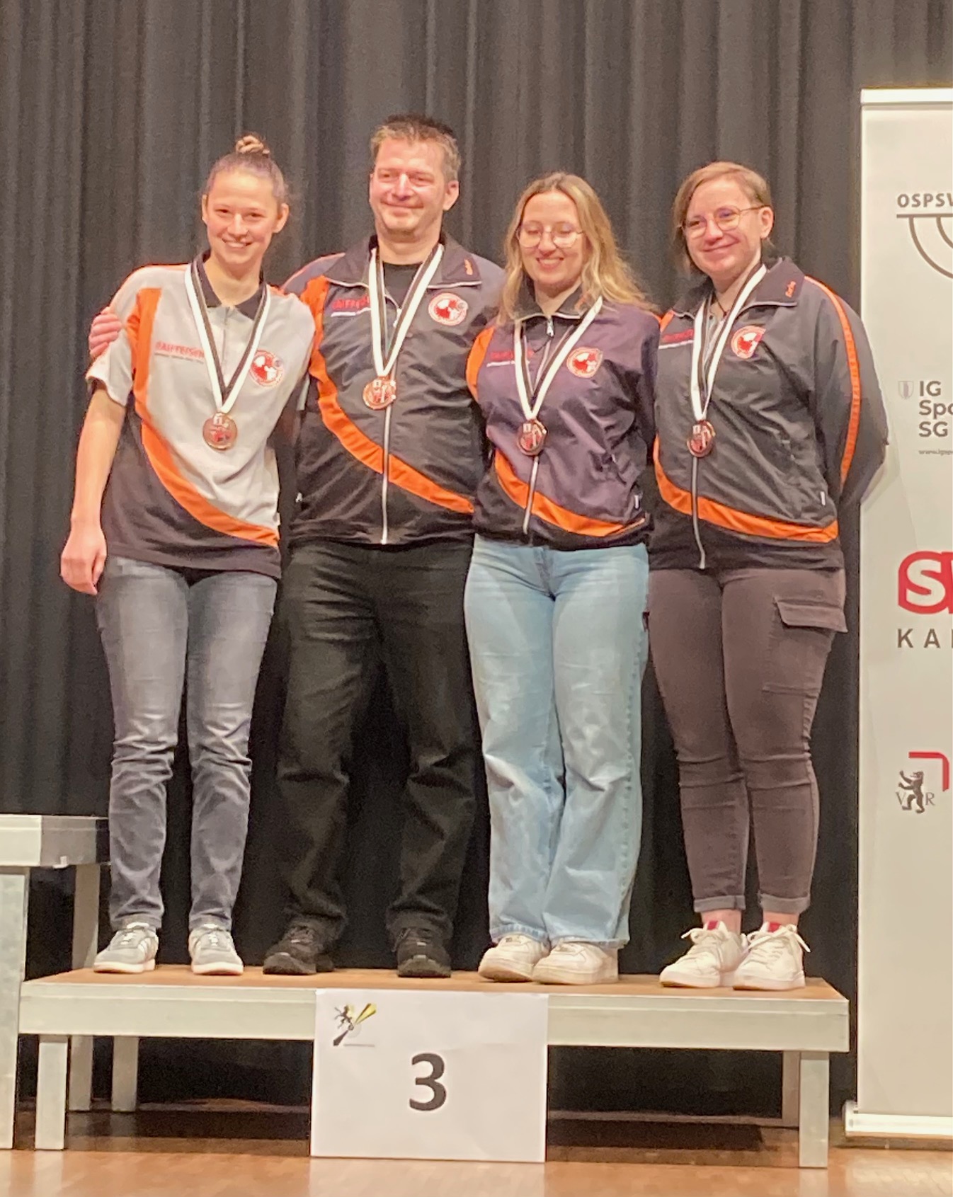 Die Gruppe holt hinter Gossau und Ebnat-Kappel auf denkwürdige Art und Weise die Bronzemedaille. Kurz nach Wettkampfbeginn erleidet Seraina einen Zusammenbruch ihres Kreislaufs. Sie muss eine längere Pause einlegen und kommt erst 15 Minuten vor Wettkampfende zurück. Die noch 37 verbleibenden Wettkampfschüsse schiesst sie innerhalb von 13 Minuten (!) und sichert so der Gruppe die Medaille.