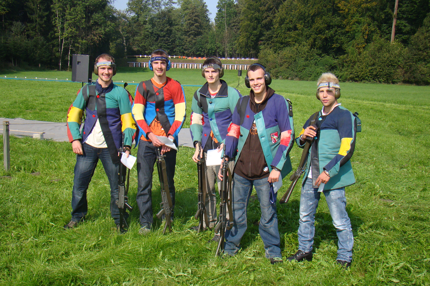 Auf dem Foto zu sehen sind Kaj Witzig, Nick Witzig, Martin Horisberger, Sandro Moser und Michael Heierli nach Absolvierung des Programms. Auch Michael war zum ersten Mal dabei und kam auf 10 Trefferpunkte.