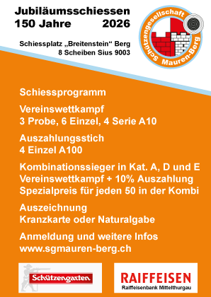 Im Vereinswettkampf schwang Reto Schudel, Wittenbach mit 99 Punkten obenaus vor Peter. K Rüegg, Altnau-Langrickenbach; Ernst Gantenbein, Elgg; Urs Rietmann, Thunbachtal; Sandra Marolf, Altnau-Langrickenbach und Rita Lüönd, Bussnang mit je 98 Punkten.