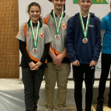 Im anschliessenden Einzelwettkampf über 40 Schuss qualifizierten sich Chiara und Kevin für den Final der besten acht. Nach der ersten Finalserie lag Kevin auf Rang 2 und Chiara auf Rang 7. In den folgenden Finalschüssen konnte sich Chiara weiter nach vorne arbeiten, während Kevin etwas an Boden verlor. Am Schluss durfte sich Chiara erneut die Silbermedaille umhängen lassen und Kevin konnte sich über seinen feinen 6. Rang freuen. Herzliche Gratulation !
