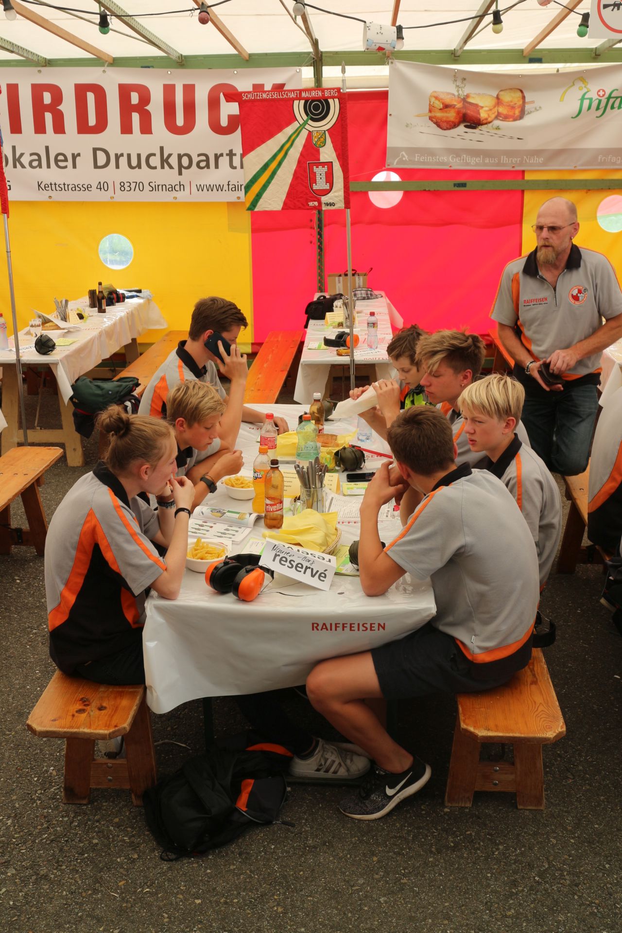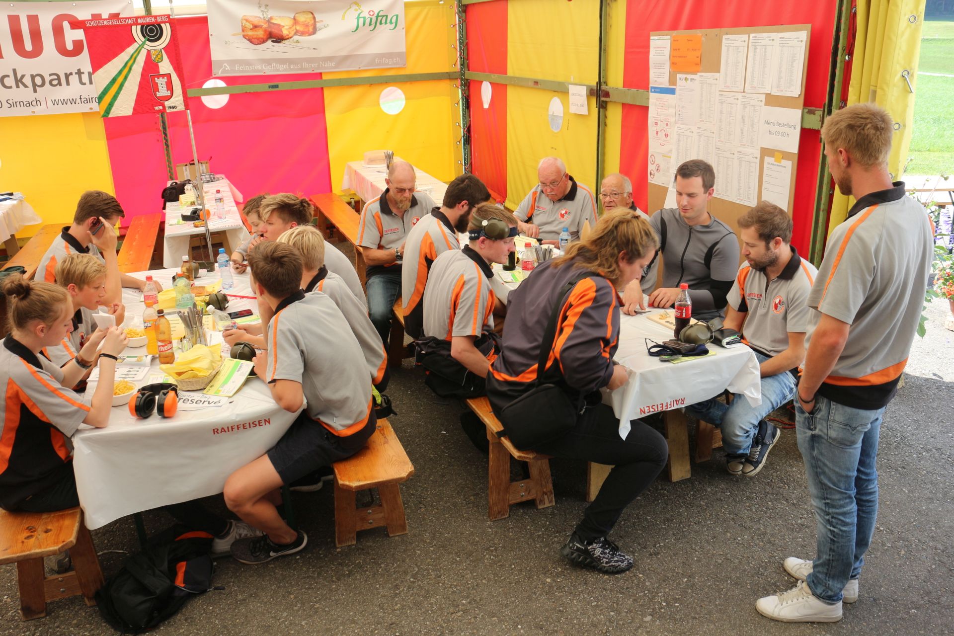 Für einmal brach bei Treffpunkt um 6:20 keine Hektik aus als sich die Abfahrt verzögerte, da viele die Waffenkontrolle im Festzentrum in Sirnach bereits absolviert hatten und somit mit gut gefüllten Autos direkt auf den Schiessplatz fahren konnten. Die Festwirtschaft war bereit, dass wir uns gleich stärken konnten. Auf unseren 4 Scheiben wurde der Wettkampf zügig in Angriff genommen. Was sich bereits am frühen morgen abzeichnetet blieb den ganzen Vormittag gleich, dass sich abwechselnd unsere Scheiben als "Zebras" zeigten. Es hiess halt einfach sich auf das Korn und nicht die Scheibe zu konzentrieren. So waren dann die Resultate breit gestreut von sehr gut bis zu leisen Enttäuschungen.
