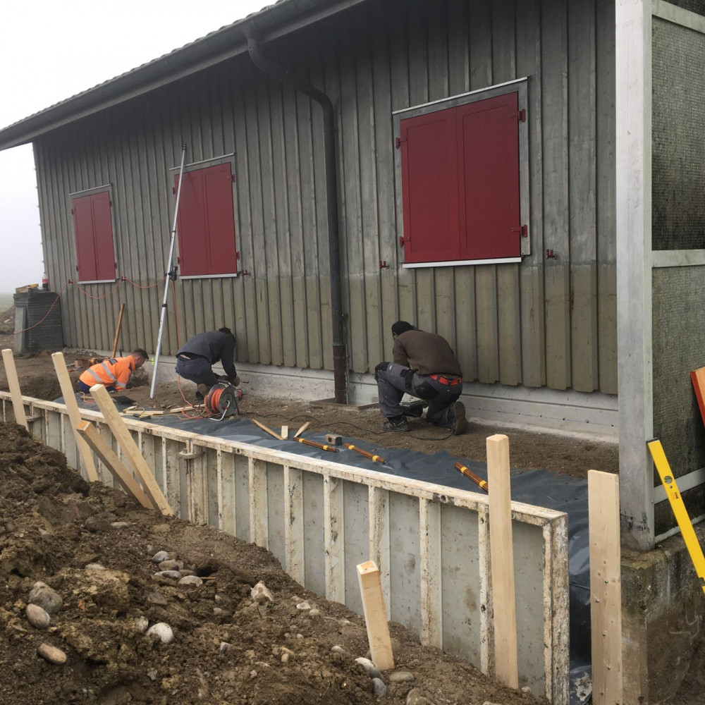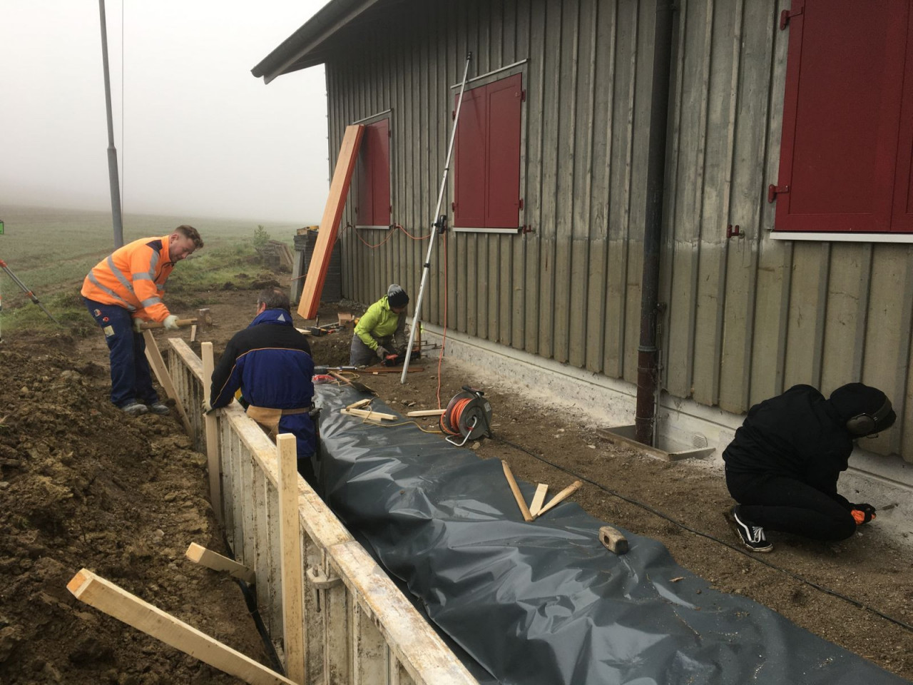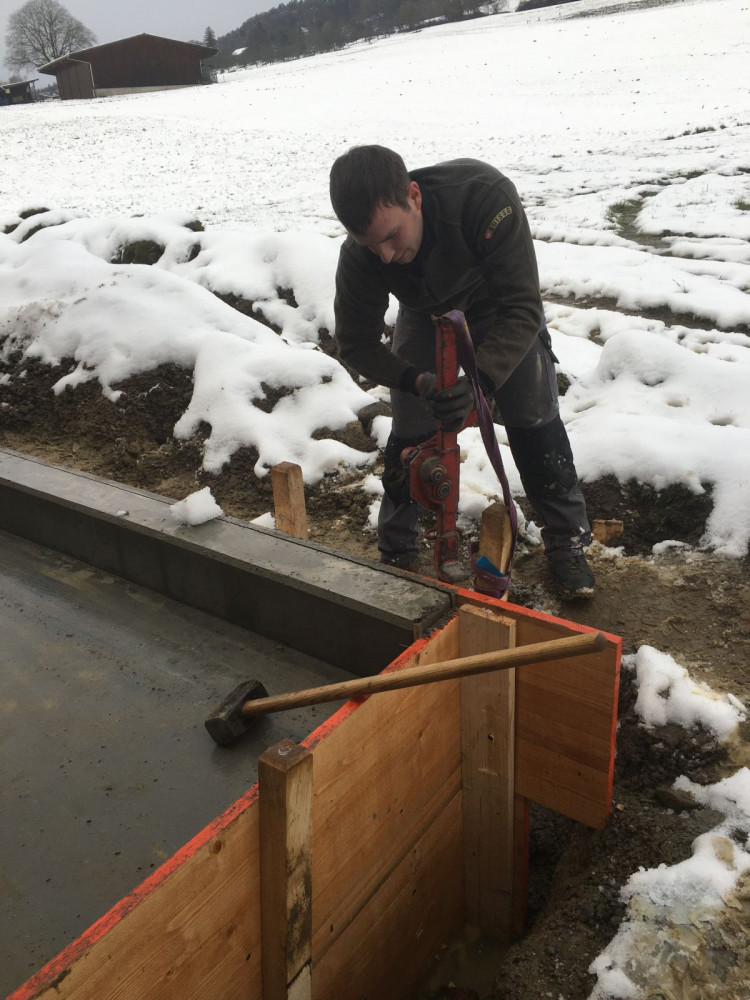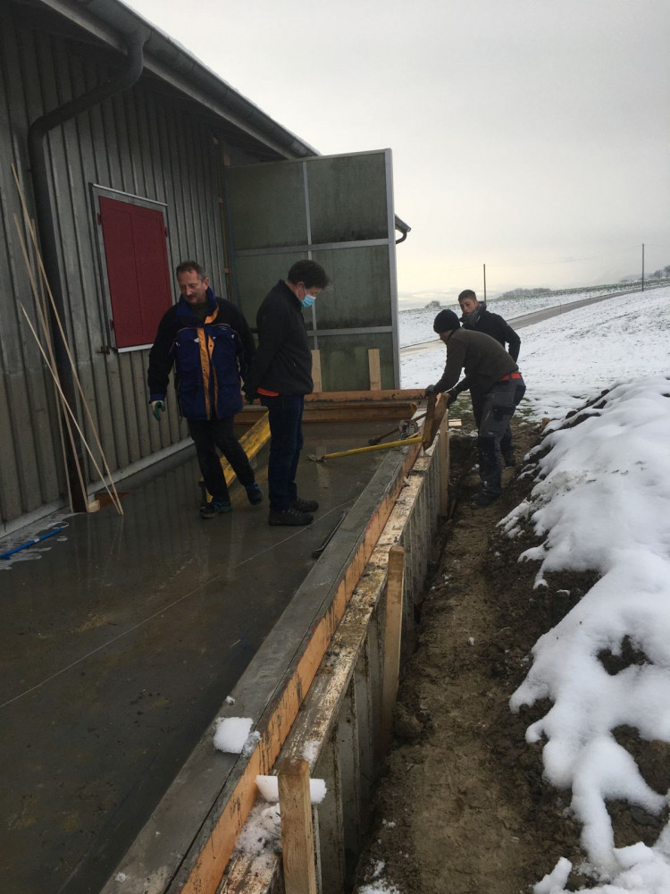 Heute galt es die Schalung zu entfernen, nachdem die Betonierarbeiten in der Zwischenzeit durch die Firma Stutz erledigt wurde.