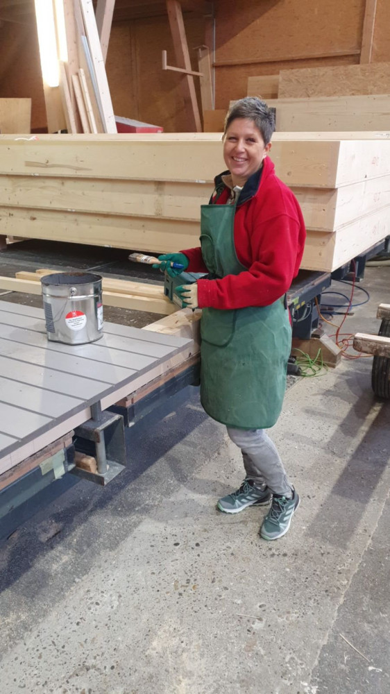 Die Elemente für den Anbau wurden bei Bornhauser Holzbau vorgefertigt und gleich in der richten Farbe gestrichen.