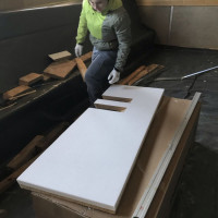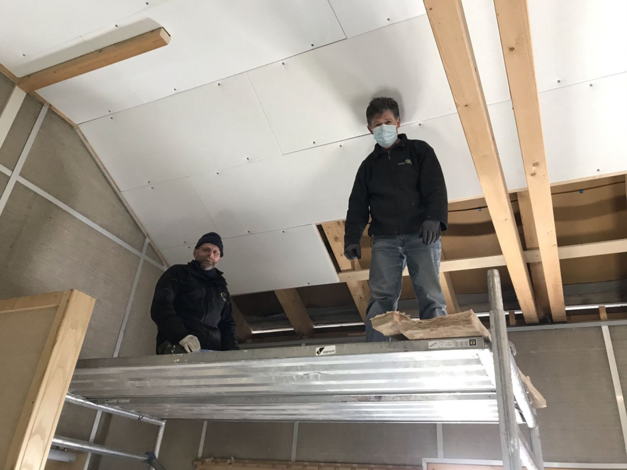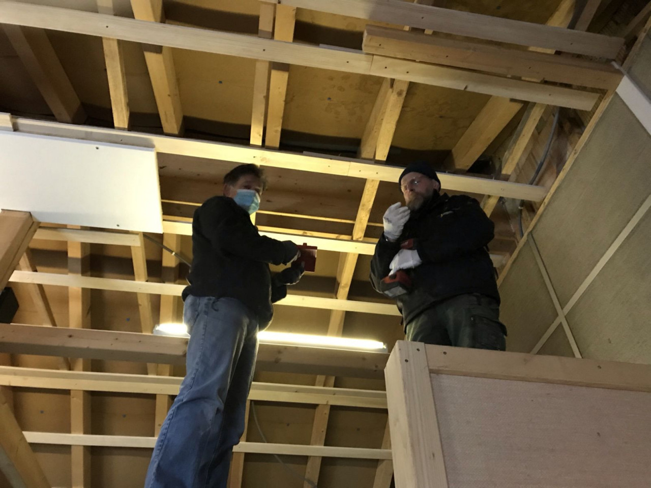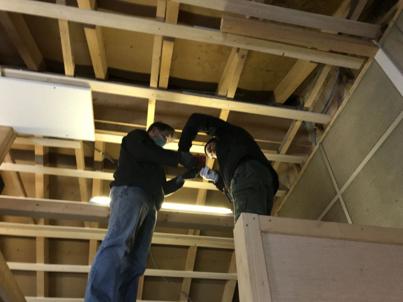 Trotz dem richtig kalten Wetter wurde beinahe die koplette Deckenisolation neu montiert. Gearbeitet wurde dabei mit weissen Handschuhen damit alles weiss blieb.
