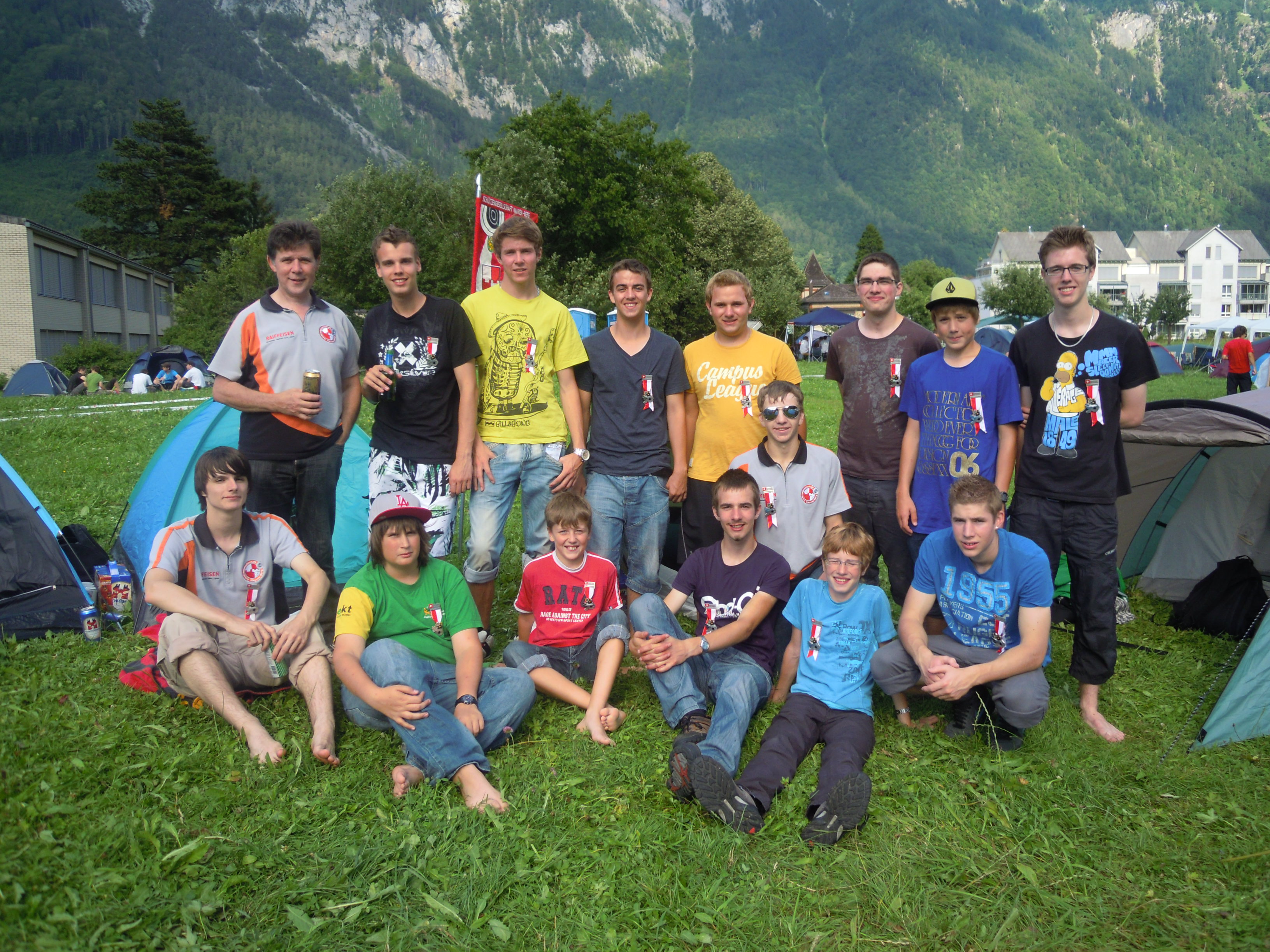 Unser nächstes Ziel war der Zeltplatz gleich neben dem Festzelt. Hier bauten wir unsere Zelte auf und genossen so das Camping feeling. Wir bsuchten auch die Nachbar Vereine, speziell die SG Hugelshofen-Dotnacht. Ihre Einrichtung mit Supergrill, Kühlschrank und Musik war schon besonderes. Auf jeden Fall ein Besuch der in Erinnerung bleiben wird.