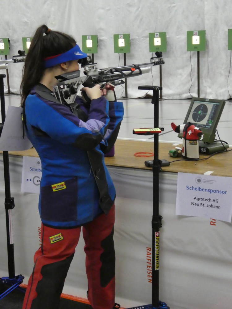 In der Kategorie U21 waren mit Cheyenne, Sarina und Seraina gleich drei unserer Schützinnen unter den 18 Wettkämpfern am Start. Alle starteten erstaunlich stark. Bei Wettkampfhälfte waren alle drei Schützinnen auf Finalkurs. Seraina verzeichnete dann in der zweiten Hälfte einen kleinen Einbruch und belegte am Schluss Rang 11. Sarina war nach dem 60-schüssigen Programm auf Rang 1 und Cheyenne auf Rang 5. Im Final liess Sarina nichts mehr anbrennen. Nach der ersten Serie noch auf Platz zwei, übernahm sie mit der zweiten Serie die Spitzenposition und gab diese nicht mehr ab. Mit 246.1 Pkt. und 3.6 Pkt. Vorsprung auf Franziska Stark durfte sich Sarina auch im Einzelwettkampf die Goldmedaille umhängen lassen. Cheyenne zeigte eine gute erste Serie, hatte danach aber einen Einbruch zu verkraften, den sie nicht mehr gutmachen konnte. Dennoch, der 8. Rang am Ostschweizer Final darf sicherlich als Erfolg bezeichnet werden.