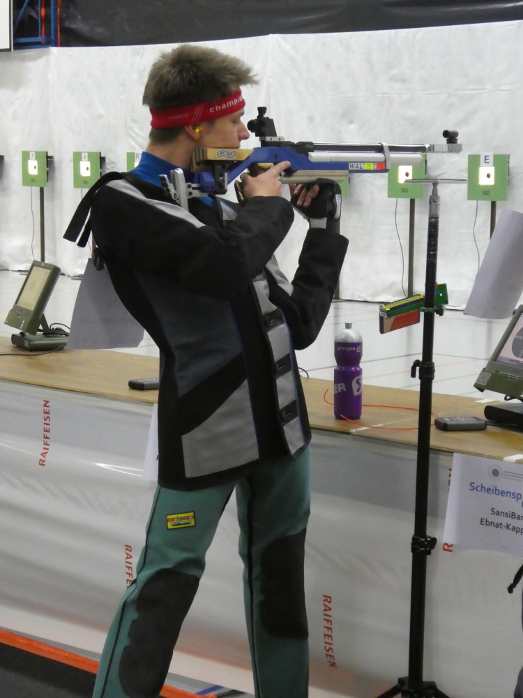 Nach den Gruppenwettkämpfen standen die Einzelmeisterschaften auf dem Programm. Als erster musste Luca bei den U17 an den Start. In der Pause wurden am Sportgeräte noch ein paar Änderungen vorgenommen und das sollte sich positiv auswirken. Luca fand einen guten Rhythmus und schon einen konstanten Wettkampf. Mit 389.4 Pkt. im 40-schüssigen Programm erreichte Luca den Final, wo er den Wettkampf auf dem 7. Schlussrang beendete.