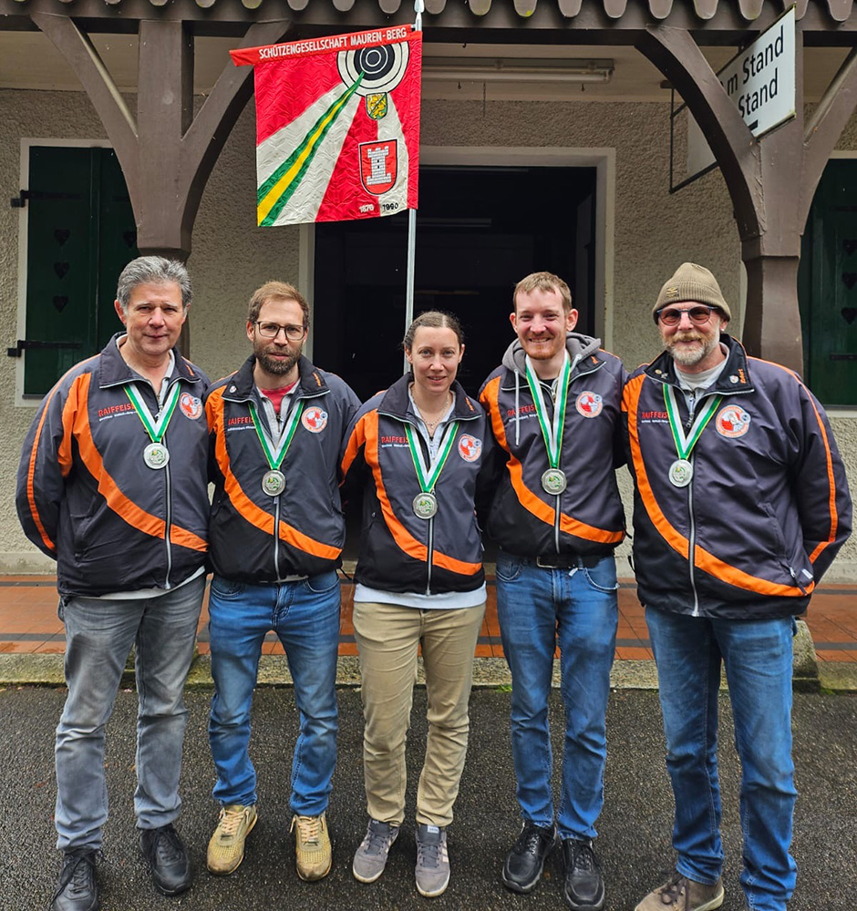 Unsere Gruppe SG Mauren-Berg 1 im Feld E gewinnt die Silbermedaille mit 684 Punkten! Auf die Gewinner der Tegelbachschützen fehlen 3 Punkte.