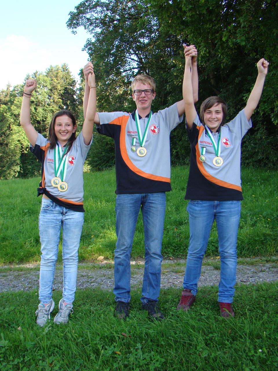 Die Jugendlichen schossen in Tälisberg bei Arbon. Dabei überzeugte die erste Gruppe mit durchwegs guten Resultaten, allen voran Cheyenne Eugster. Wie Andreas schoss auch Cheyenne 91 und 93 Punkte und wurde damit im Einzelwettkampf unangefochtene Thurgauer Meisterin. Im Gruppenwettkampf wurde Cheyenne durch Sarina Hitz (87 und 90 Punkte) und Jan Witzig (87 und 89 Punkte) kräftig unterstützt. Mit einem Total von 537 eroberten sie sich die Goldmedaille vor der punktgleichen Gruppe aus Balterswil-Ifwil. Mauren-Berg siegte dank dem höheren Rundenresultet (265 und 272 gegenüber 269 und 268). Damit ist unserer Gruppe die Teilnahme am Ostschweizer Final in Winterthur jetzt schon sicher.