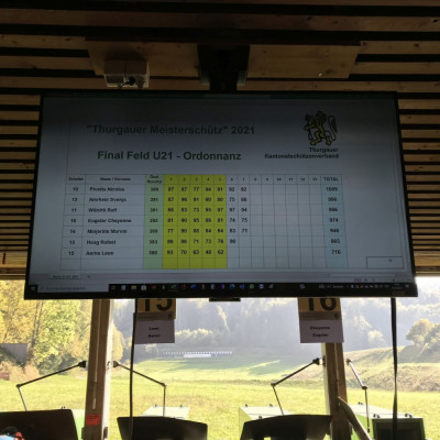 Cheyenne war nach den ersten 5 Schüssen noch an der Spitze, aber mit 74-75-80 war dann Schluss auf dem 4. Rang. Marvin kam nicht wirklich gut in den Wettkampf den er auf dem 5. Rang beendete. Cheyenne und Marvin hatten beide Mühe mit der langsamen Schiesszeit. Für jeden Schuss hatte man 1 Minute Zeit und anschliessend wurde jeder Schuss aller Teilnehmer vorgelesen. Bemerkenswert war dass von den 7 Finalisten 3 von Mauren-Berg, 3 von Bürglen und 1 von Balterswil-Ifwil kamen. Diese 7 vertrieben sich denn auch am gleichen Tisch die Wartezeit bis zum Absenden.